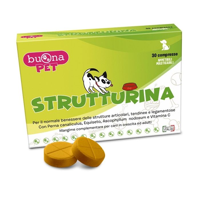 Somministrare le compresse di Strutturina direttamente in bocca all'animale o sminuzzate nel cibo gradito. Completare la razione giornaliera con l'alimento abituale. Lasciare sempre acqua fresca a disposizione.