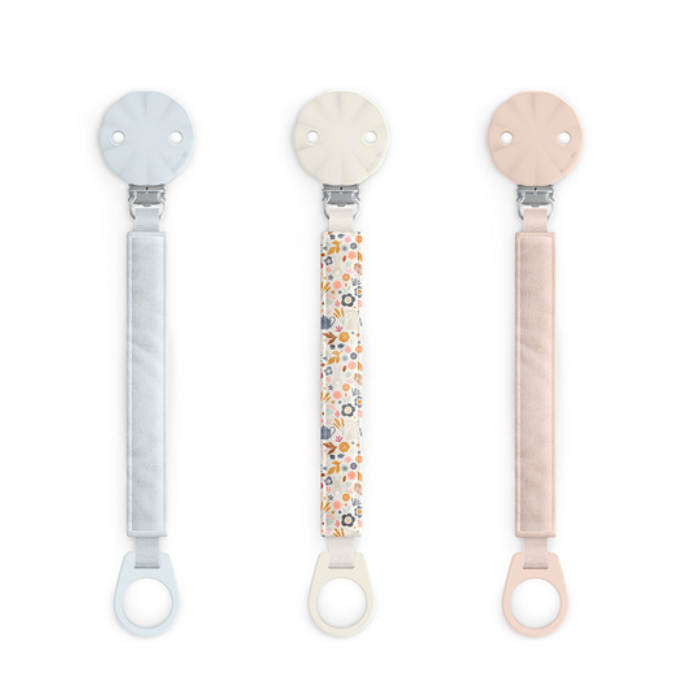 Questa clip è realizzata in tessuto flessibile e morbido, ideale per mantenere il succhietto del tuo bambino pulito e a portata di mano, evitando che cada, si sporchi o si perda.