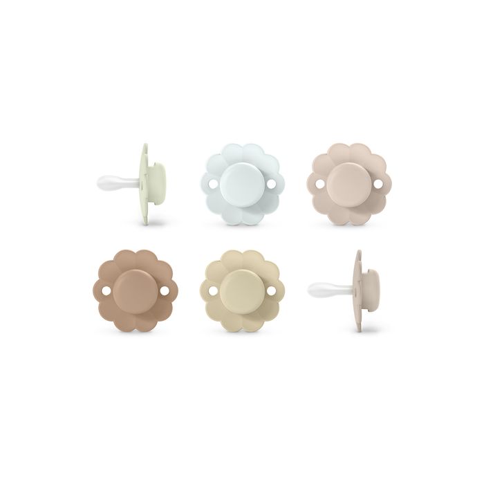 Grazie alla sua forma arrotondata, ergonomica e convessa, aiuta ad evitare urti contro il naso, permettendo all'aria di circolare liberamente tra il succhietto e le narici.