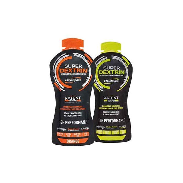 Con la speciale miscela a base di carboidrati Super Dextrin Gel di Ethicsport affronti l'allenamento energico e concentrato fino alla fine: a rilascio lento e prolungato contiene HBCD, palatinose,destrine DE6 e DE18.