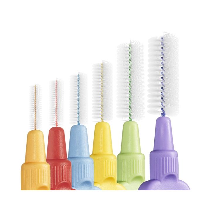 Scovolino in varie misure, con setole morbide per rimuovere la placca dai denti. Presa ergonomica, con cappuccio protettevi.