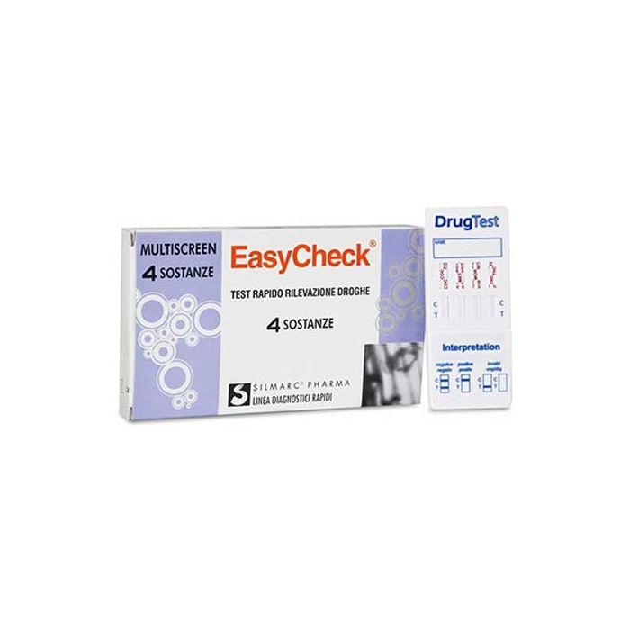 Easycheck è il test monouso per rilevare rapidamente nelle urine umane l'eventuale presenza di una di queste quattro sostanze: cocaina, morfina/oppiacei, cammabinoidi, metamfetamina.