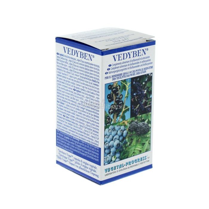 Ricco di estratti di ribes nero, aronia, sambuco, mirtillo Vedyben Vegetal Progress migliora la vista ed è un integratore con proprietà antiossidanti.