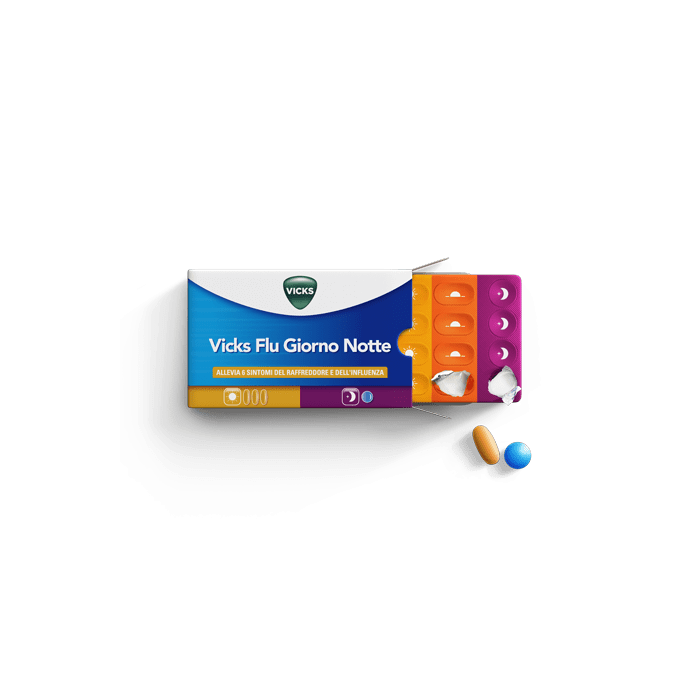 - Compressa giorno (gialla): Paracetamolo 500 mg / Pseudoefedrina cloridrato 60 mg.