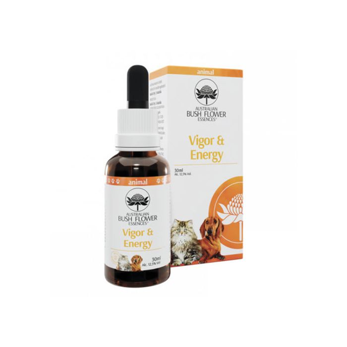 Animali anziani, post intervento, cani accaldati, gatti che hanno bisogno di energia: aiutali con VIGOR&ENERGY, l'essenza combinata di fiori australiani di Green Remedies.
